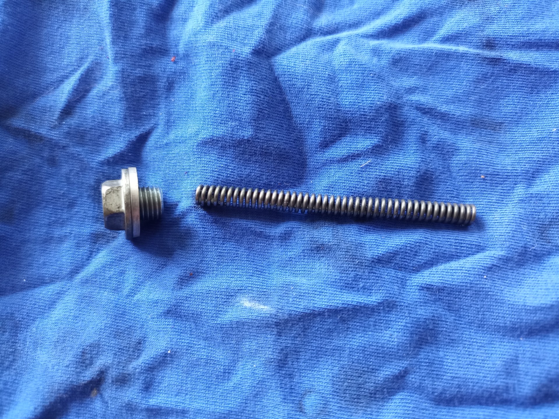 Anschließend muss die Steuerkette entlastet werden. Der Steuerkettenspanner der J-/K-Modelle unterscheidet sich von dem der L-/M-Modelle insofern, dass dieser seitlich (links) positioniert eine Verschlussschraube aufweist (siehe Abbildung im WHB), während am Steuerkettenspanner der L-/M-Modelle an dessen hinteren Ende eine Verschlussschraube aufweist, mit der die innenliegende Feder entspannt werden kann.