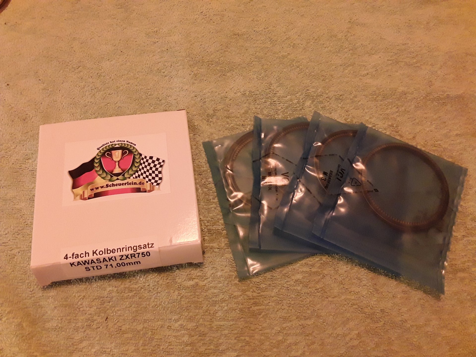 Wir haben auf seine Empfehlung hin bei der GPZ1100B1 meines Papas ebenfalls Übermaßkolben inkl. Kolbenringset, Sicherungsclips usw. von Scheuerlein verbaut.
