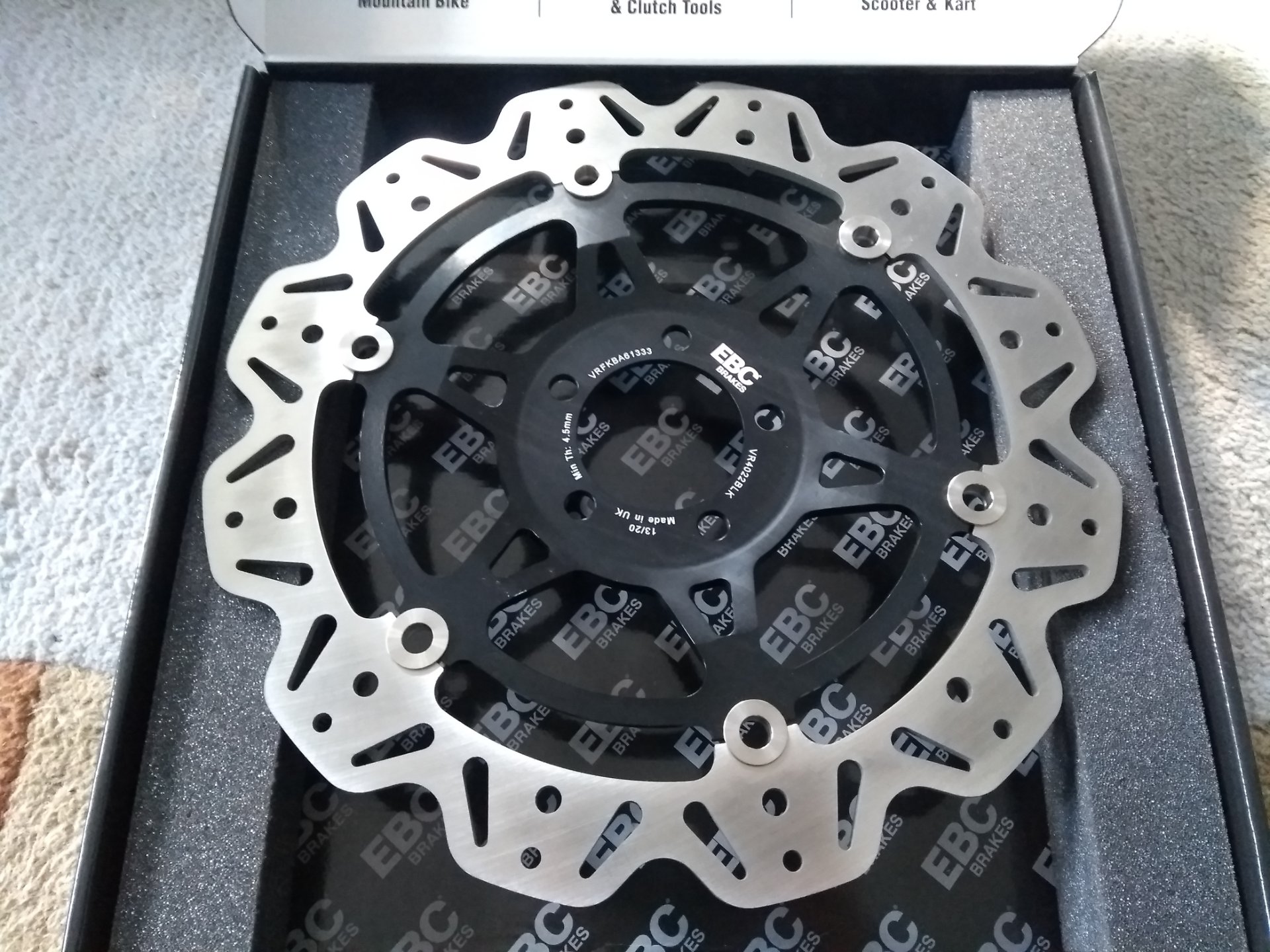 Jetzt sind ringsum EBC-Wavescheiben, vorne vollschwimmend, verbaut.