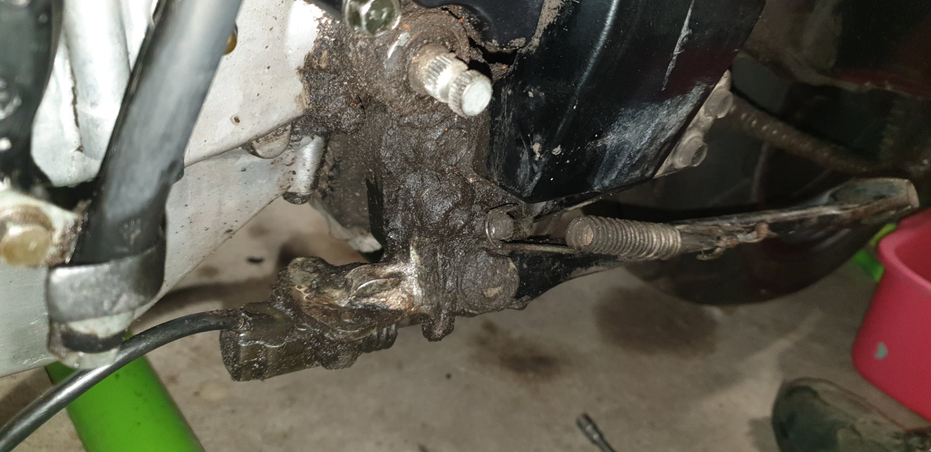 Also meine Vermutung ist, das die Karre mal auf die Seite gelegt wurde und dabei der Einfüllstopfen undicht oder abgerissen ist ....nur ne Vermutung.