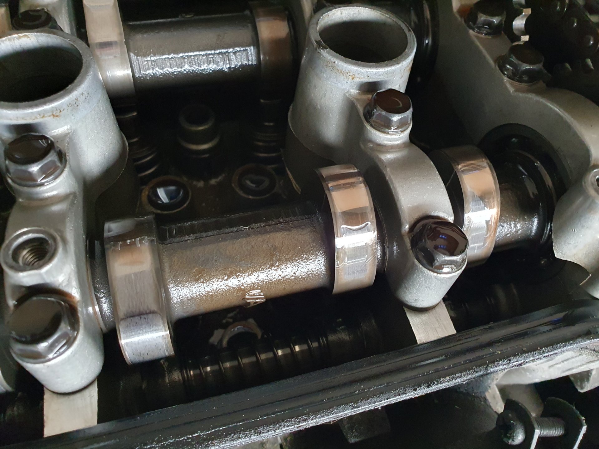 Hi, heute den Ventildeckel gelöst, den Schleifer am Deckel fehlt komplett... Ventilspiel an zwei - drei Stellen gemessen, ist aber viel zu wenig, ca 0.1 bis 0,15mm auf Einlass sowie Auslass. Werd die Tage alles aufschreiben, Shims ausmessen, mal ein Bild von der besagten scharfen Nockenwelle machen.