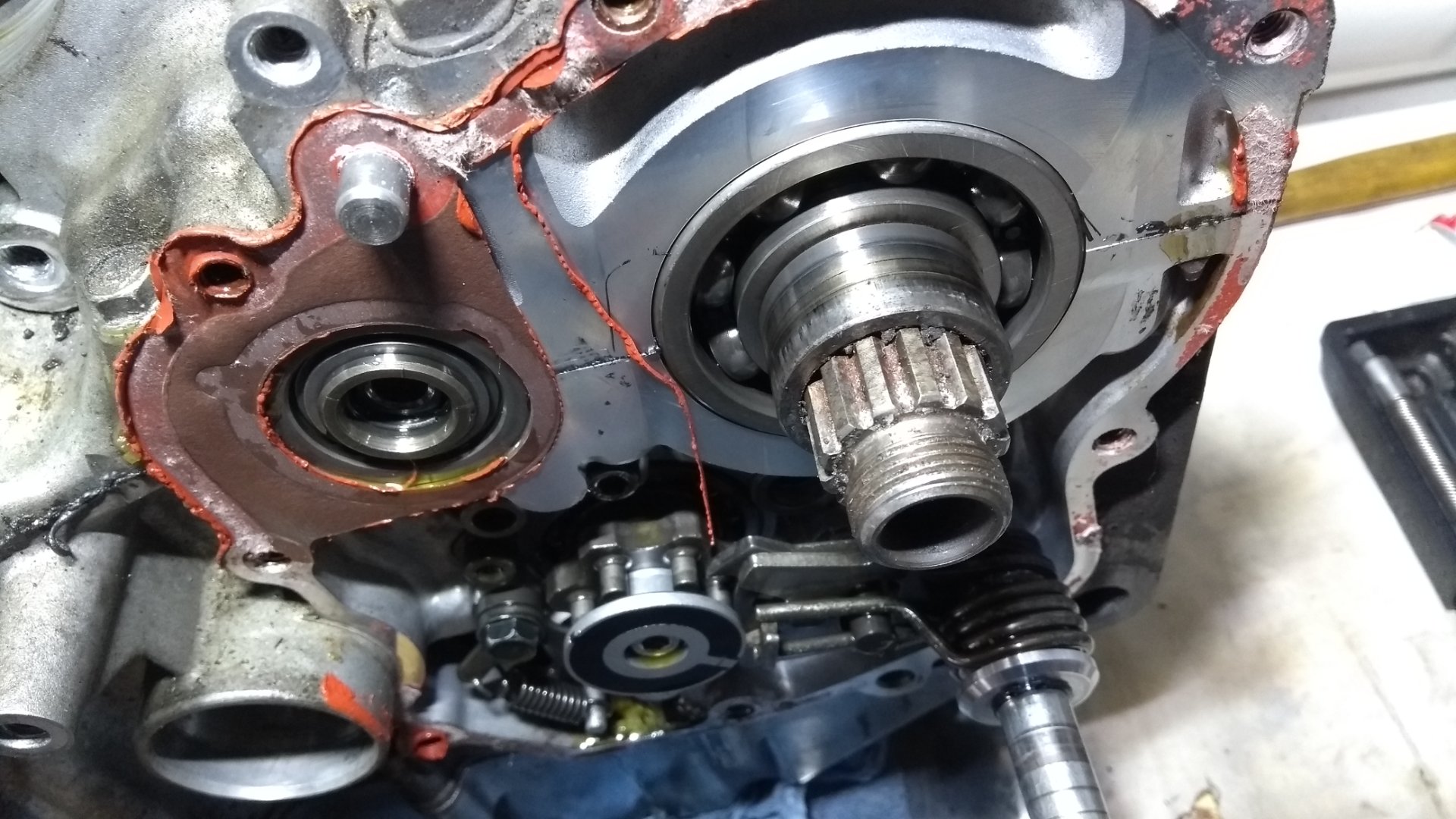 Das Bild ist von vor dem Wechsel, so wie ich den Motor vorgefunden habe. Ironischer Weisse war das Antriebsritzel immer dicht gewesen. Den Ring habe ich nur getauscht weil ich alle 3 machen wollte wenn schon auseinander. Ich hoffe jemand kann mir mit seinem Wissen weiterhelfen.