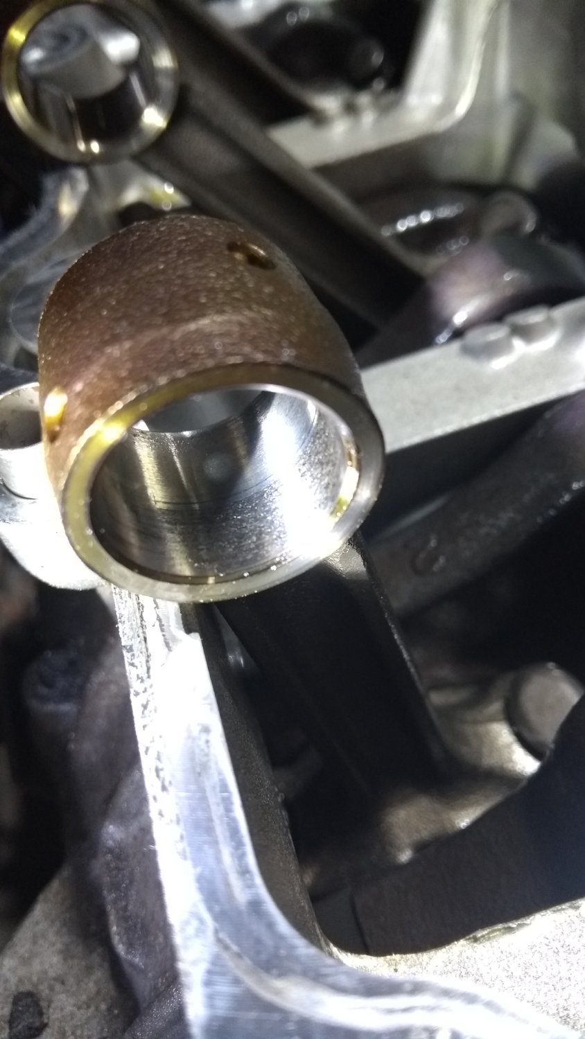 habe heute den Zylinder und die Kolben ausgebaut. Die Kolben sehen alle 4 wirklich super aus. Auch die Laufbahnen sind in super Zustand. Eine hatte mal irgendetwas vernascht , aber ich glaube das ist ok. (Man fuehlt es kaum mit dem Fingernagel) Aufgefallen ist mir auch das Pleuel nr 1 und der entsprechende Kolbenbolzen leichte Reibespuren haben. Ich hoffe mal ein neuer Bolzen genuegt hier. Weiss nicht ob ein neues Pleuel unbedingt noetig ist.Ich hoffe jedefalls nicht. Im Anhang sind die Bilder. Freue mich wie immer ueber eure Erfahrungen und Tips.