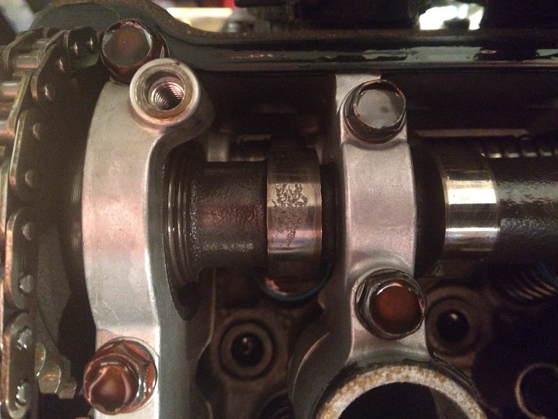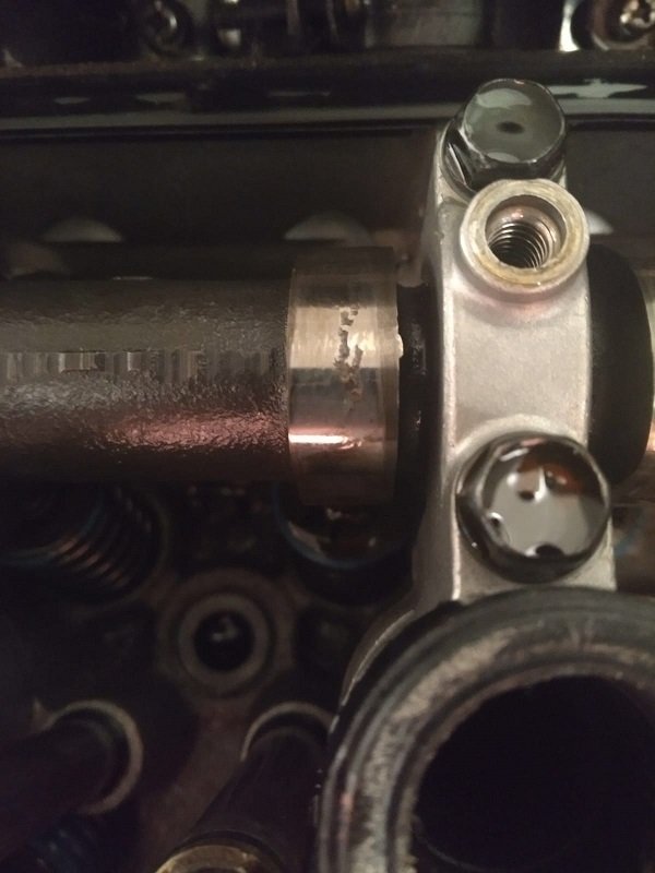Für die paar KM im Jahr, die mit den Nocken auf der Renne gefahren werden, würde ich die Wellen drin lassen, zudem ja auch das Öl nach ein paar Hundert KM bereits wieder gewechselt wird. Zugegeben, die am Nockenwellenantrieb laufende Nocke hat wirklich breitflächig Ausbrüche, trotzdem wird sie ihren Dienst verrichten, das kann man auch später noch richten.
