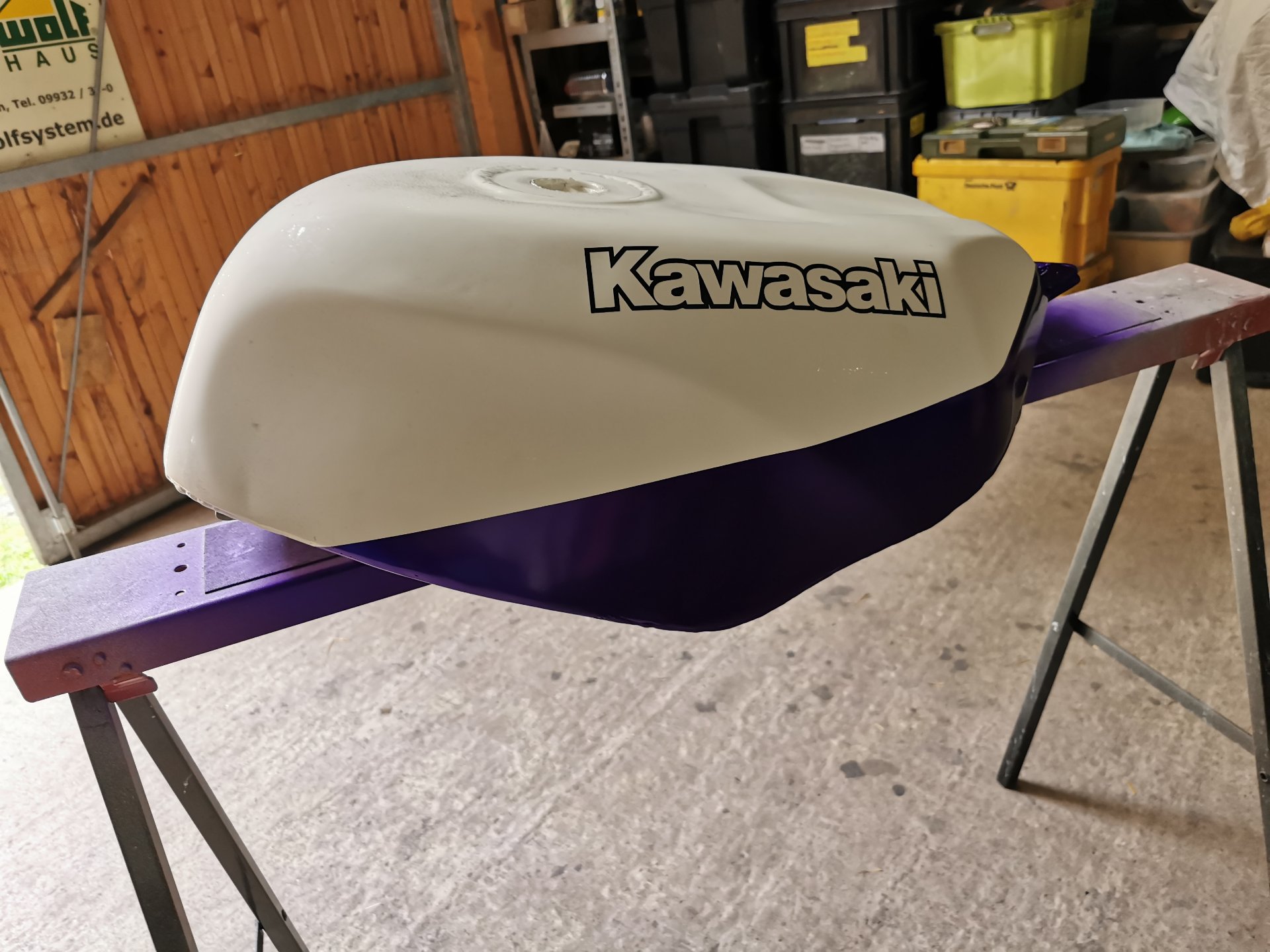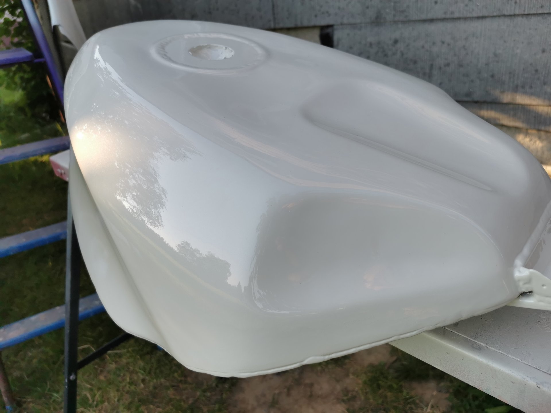 Es geht um einen pulverbeschichteten Tank, der bisher schwarz pulverbeschichtet ist und daher eine seidenmatte Oberfläche hat.