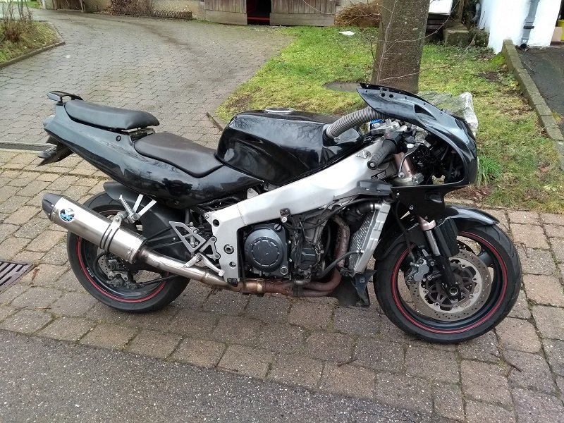 Beim Unfall wurden leider Gabel, Fender, Spiegel und viele Kleinteile beschädigt/zerstört. (Rahmen und Schwinge blieb heile und gerade)