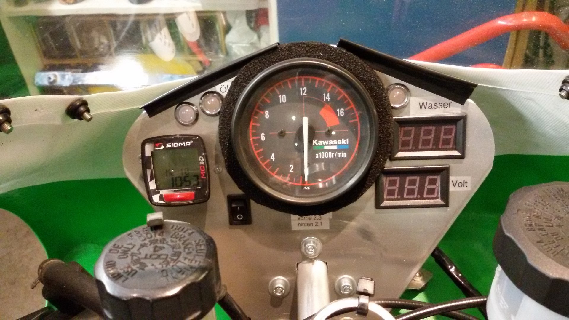 Der schwankende Drehzahlmesser wurde durch einen ZXR 400 Drehzahlmesser ersetzt und etwas gedämpfter gelagert.
