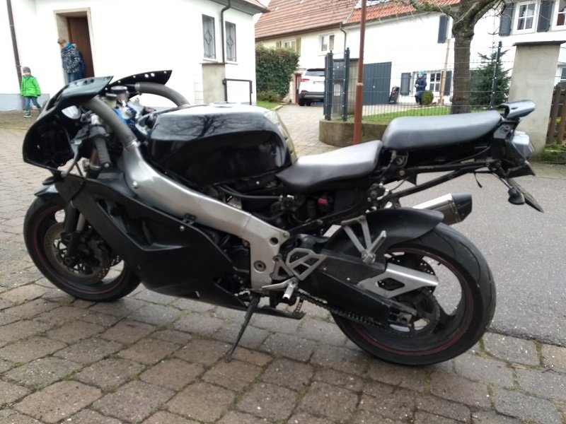 Beim Unfall wurden leider Gabel, Fender, Spiegel und viele Kleinteile beschädigt/zerstört. (Rahmen und Schwinge blieb heile und gerade)
