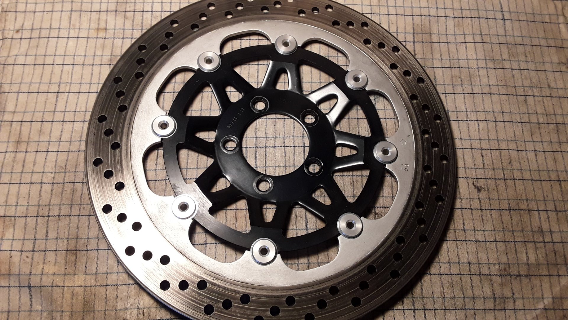 Habe wie in der Anleitung vermerkt nur 2 Scheiben verwendet. Mit 3 war der Zusammenbau zu stramm und es war fast wie vorher. Das liegt hauptsächlich daran, dass der Träger bei mir 1/10mm dicker ist als der Bremsring. Mit 2 Scheiben ist der Schwimmeffekt deutlich, aber noch nicht am klappern. Fahrversuche folgen.