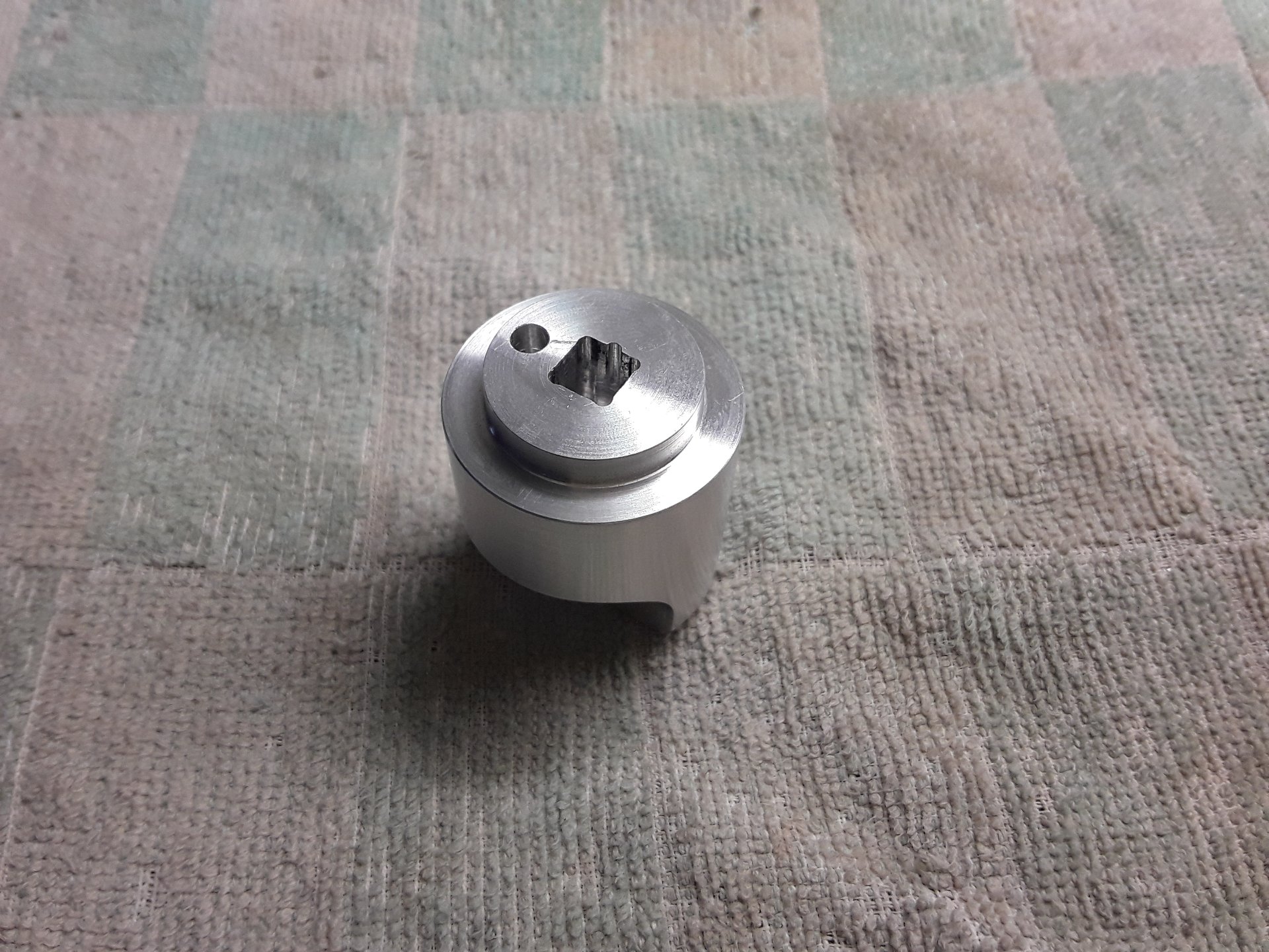 Hatte ich erstmal nur aus Spaß gemacht. Dann gedacht, warum nicht eloxieren und benutzen. Der örtliche Eloxierer meinte, geht nicht zu spannen. Daher das Außengewinde, was eigentlich nur zum Prüfen war, vorgeschlagen zum Anklemmen.